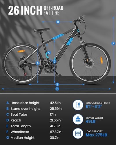 Be the first to review “Electric Bike for Adults,36V Built-in Invisible Removable Battery,350W Brushless Motor(Peak 450W) Electric Mountain Bike,26″ Tires&Front Fork Suspension,UL Certified 7-Speed.” Cancel reply