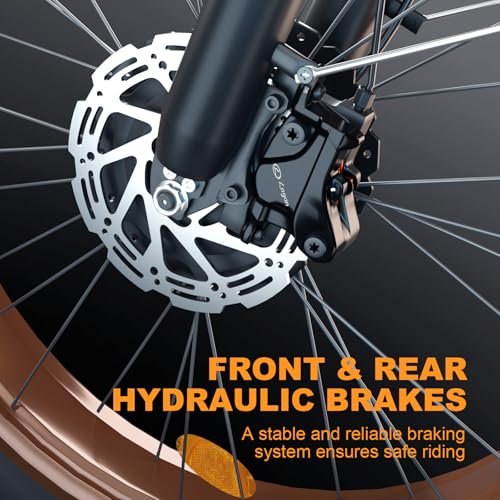 • Bicicleta electrica para adultos: Armed with front and rear hydraulic disc brakes, this electric moped offers u an easy brake within 2 seconds, safe and professional. The high-quality lockable suspension fork has a good shock absorption effect,helps u feel less fatigue and enjoy smoother riding no matter what terrain it is