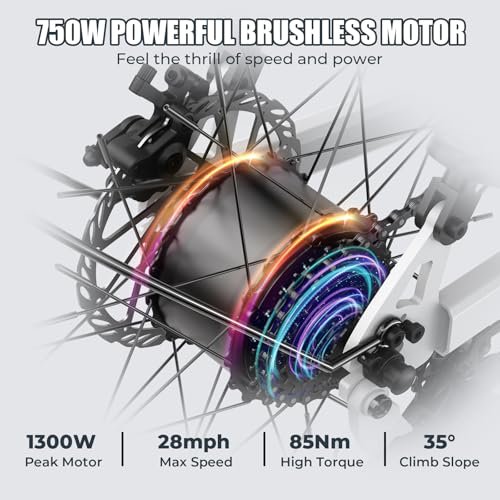 • 【PEAK 1300W POWERFUL MOTOR】Our electric bike boasts a stable 750W brushless high-speed motor with 85Nm of torque, enabling speeds up to 28mph and effortless climbs up to 35°. Paired with a professional 7-speed transmission, it ensures precise adaptation to all road conditions;