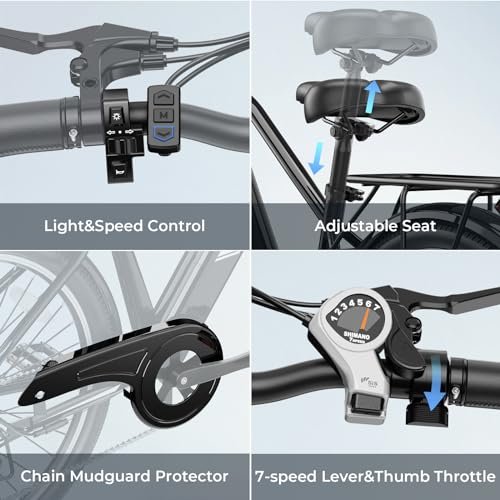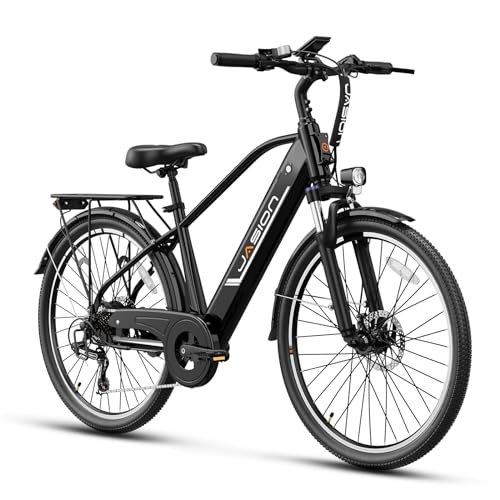 Jasion Roamer Electric Bike for Adults 1200W Peak Motor 528WH Removable Battery,up to 60miles 28MPH City Cruiser Ebike,26” Commuter E Bike, 7-Speed Gears and Front Suspension Bicycles.