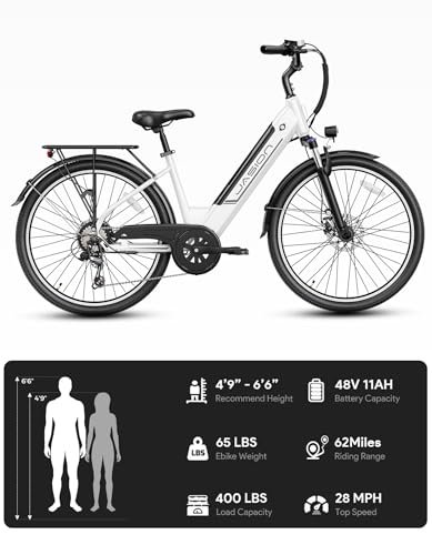 Jasion Roamer ST Electric Bike for Adults, 1200W Peak Motor Max 62miles & 28MPH City Cruiser Ebike,26” Commuter Ebike, 528WH Removable Battery,7-Speed Electric Bicycles, Front Suspension Bicycles.