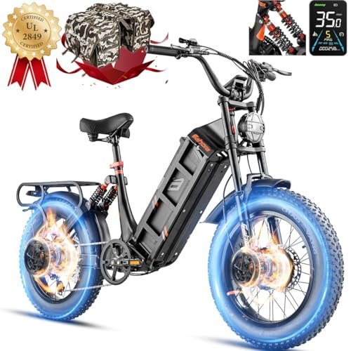 Juliet III/Juliet 60Ah 2000W/1200W(Peak) Electric Bike for Adults Dual Motor Long Range 100-200 Miles Ebike 33MPH ​​20″ Fat Tire E-Bike Full Suspension Step-Thru Electric Bicycle.