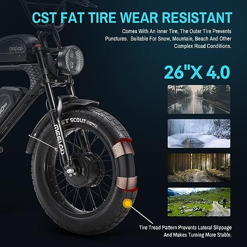 With a top speed of 35 mph, this e-bike lets you conquer any road or trail with ease. Whether you’re commuting to get off work or exploring off-road terrain, the MEELOD Fat Tire Electric Bike delivers an exciting and adrenaline-pumping experience.