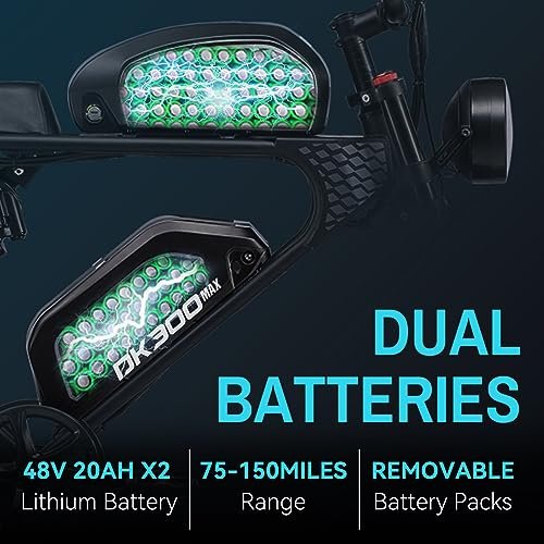 • ✔️【DK-300-MAX Battery】 Equipped with two sets of 48V 20AH batteries to form a 48V 40AH battery, providing 60 miles of pure electric cruising range, 120 miles of pedal assist, and 35 miles per hour of pure electric cruising range.