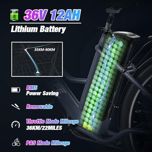 RCB Electric Bike, 500W Electric Bike for Adults, 26″ Ebike Adult Electric Bicycles, 55Miles 20MPH Commuting Electric Mountain Bike, 36V 472Wh Battery, 7-Speed, 26″ Tires and Front Fork Suspension.
