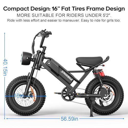 Spacewalk Small Electric Bike,16″ Fat Tire Ebike,Compact Design,More Suitable for Riders Under 5’2″, and Teenagers with 750W Motor, 21.7MPH with Removable 48V/15AH Battery,50-Miles Motorcycle.